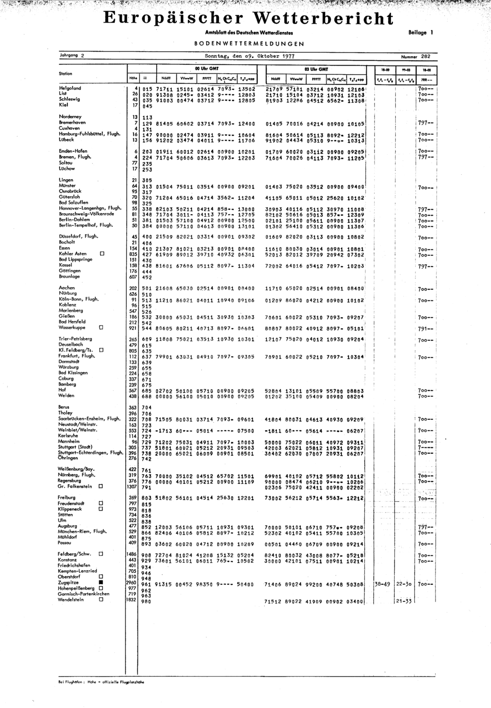 Europäischer Wetterbericht. Beilage 1, Bodenwettermeldungen. 1976-1994