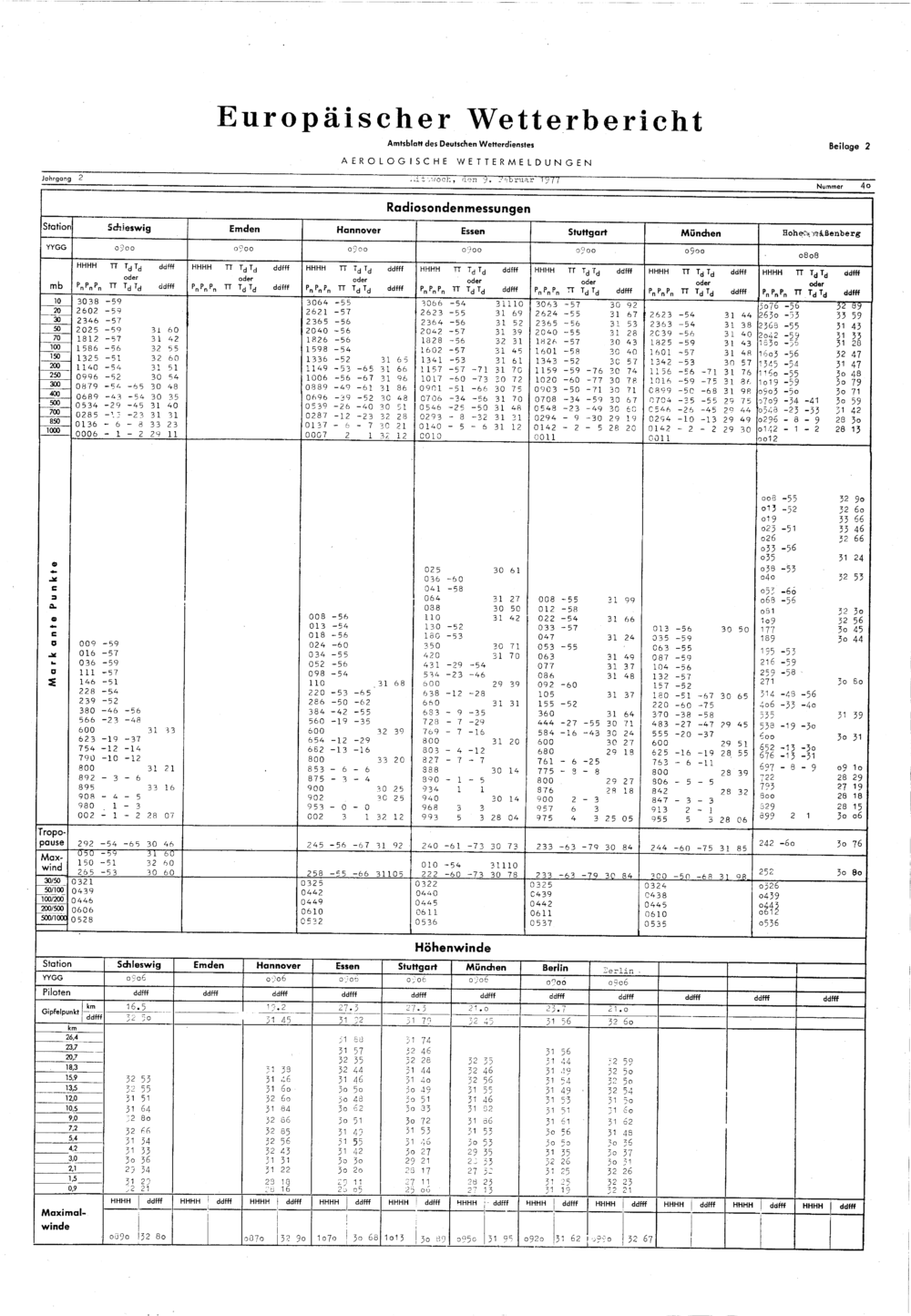 Europäischer Wetterbericht. Beilage 1, Bodenwettermeldungen. 1976-1994