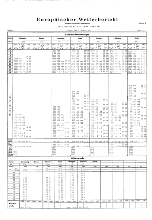 Europäischer Wetterbericht. Beilage 1, Bodenwettermeldungen. 1976-1994