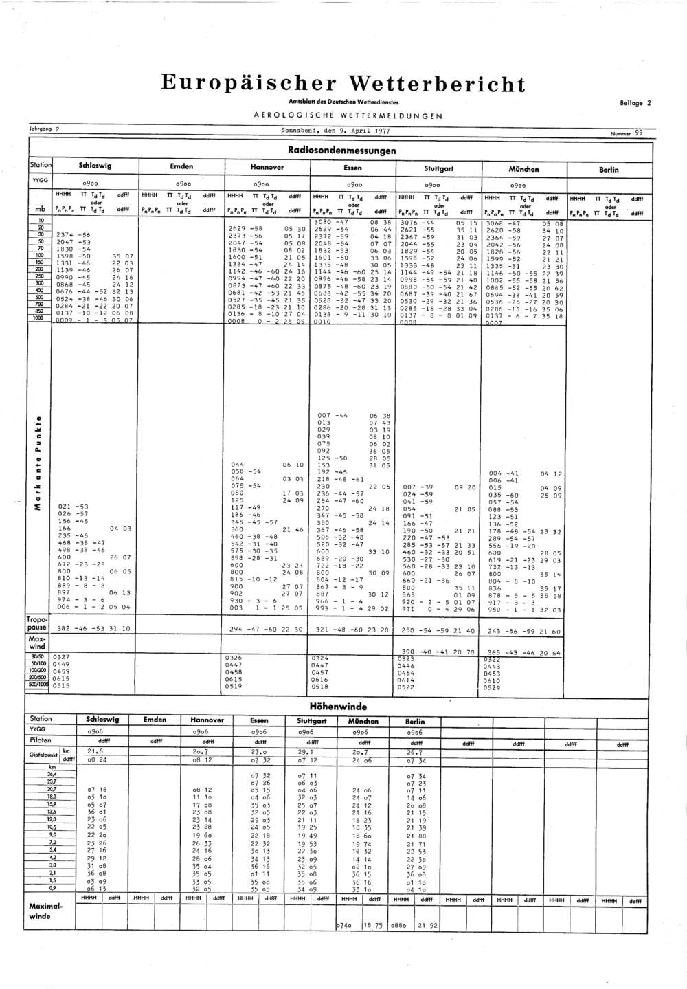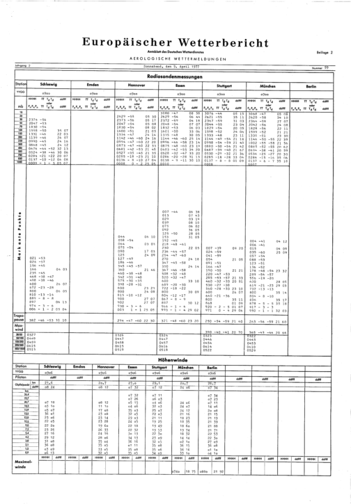 Europäischer Wetterbericht. Beilage 1, Bodenwettermeldungen. 1976-1994