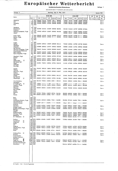Europäischer Wetterbericht. Beilage 1, Bodenwettermeldungen. 1976-1994