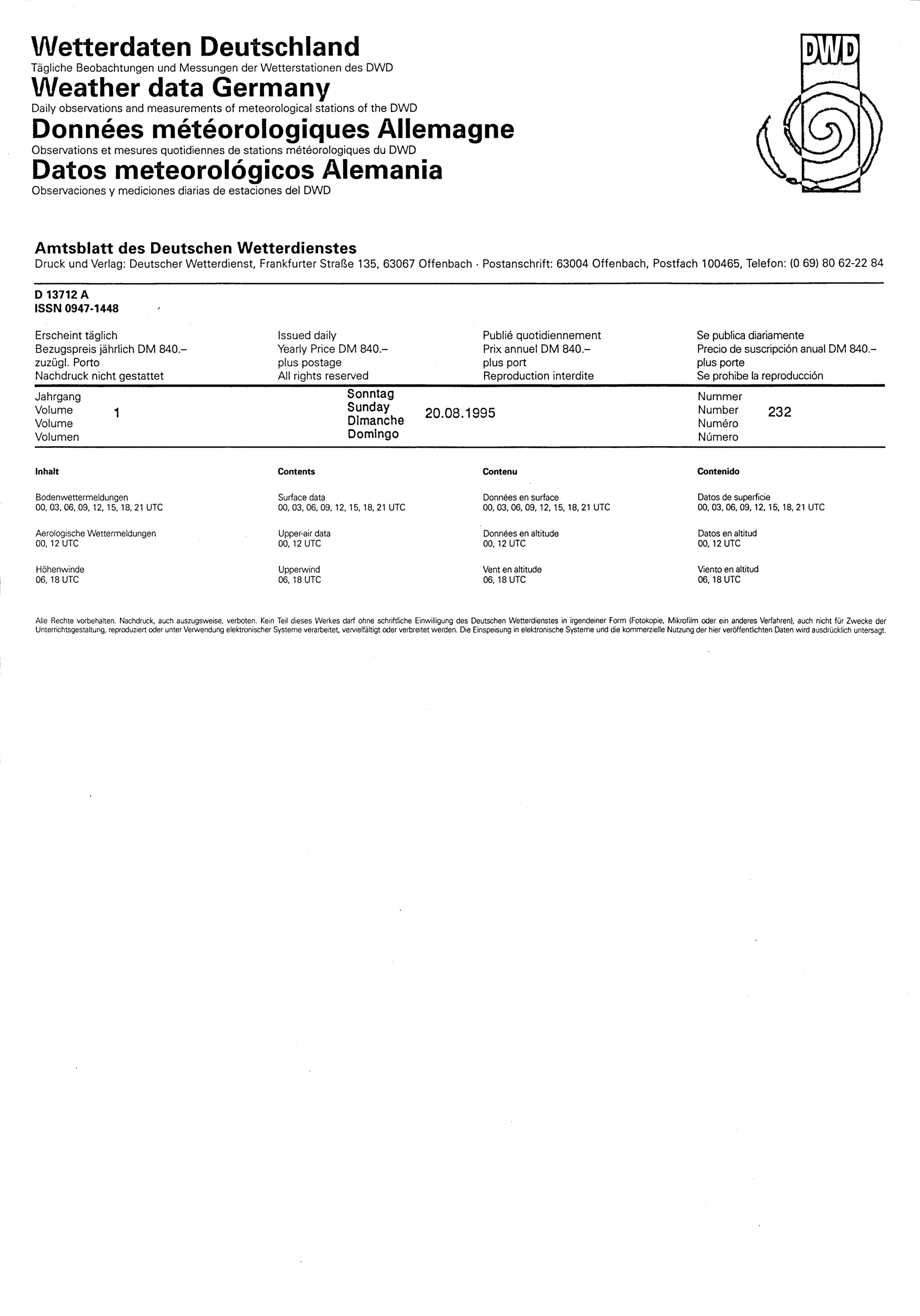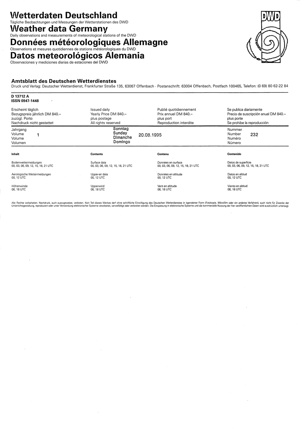 232 (20.8.1995) Daten