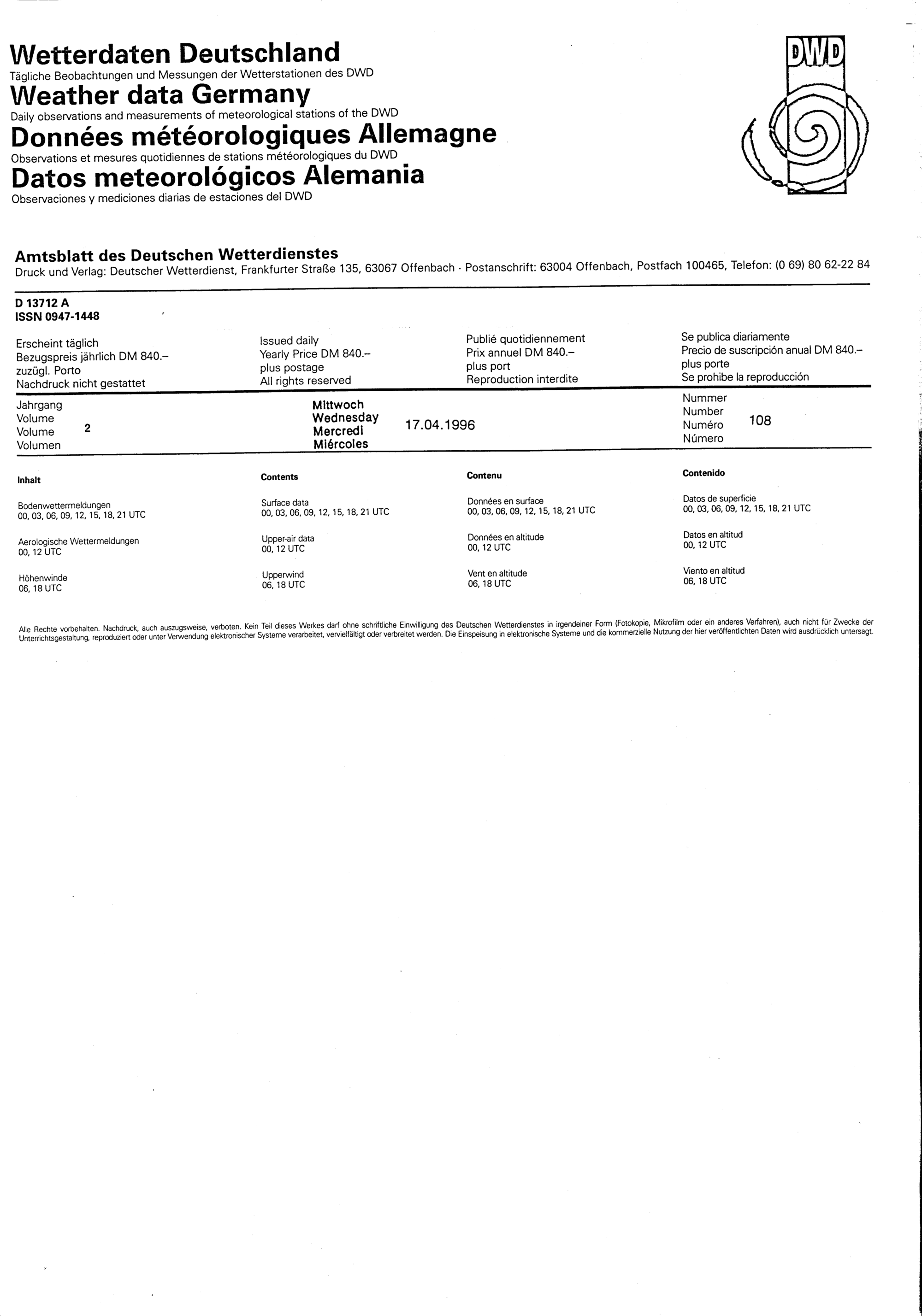 108 (17.4.1996) Daten