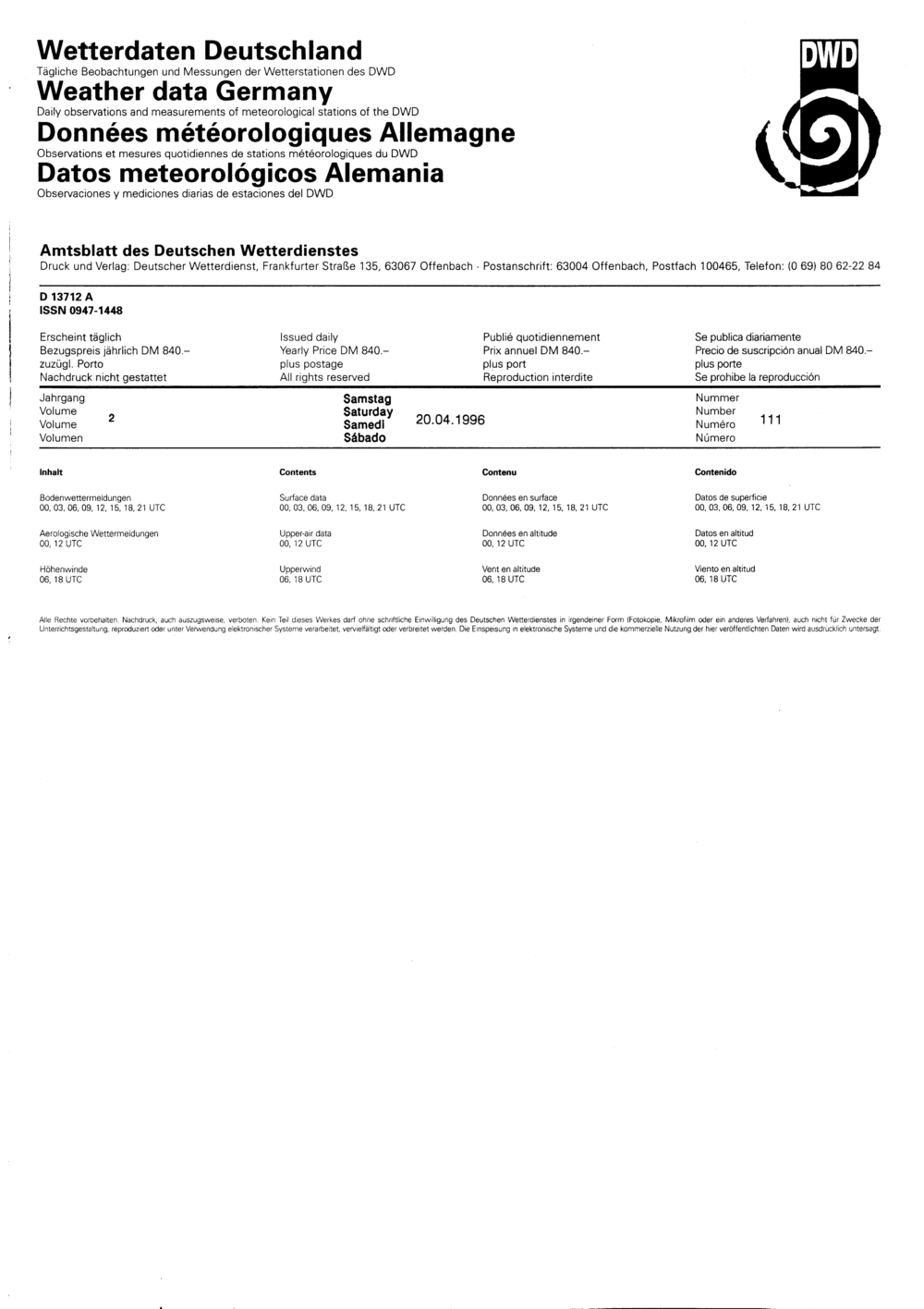 111 (20.4.1996) Daten