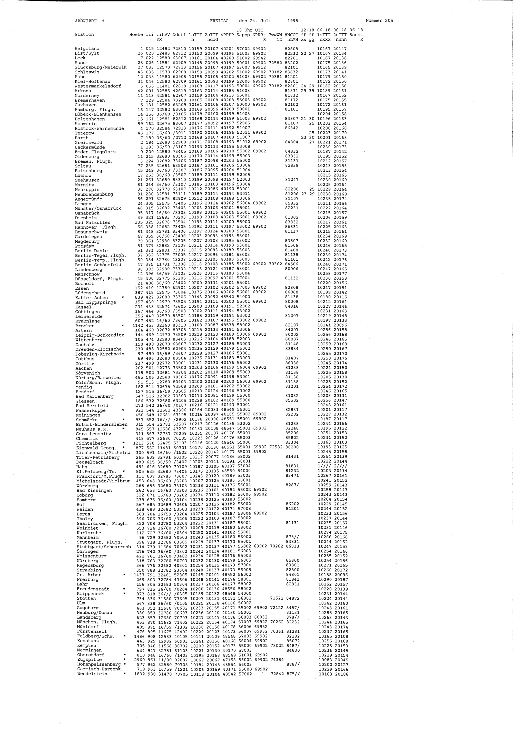 205 (24.7.1998) Daten