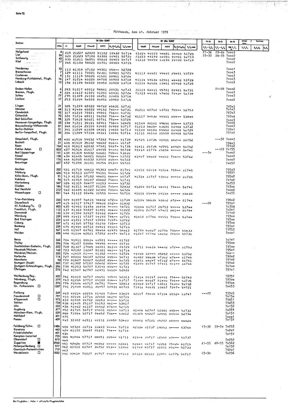 Europäischer Wetterbericht. Beilage 1, Bodenwettermeldungen. 1976-1994