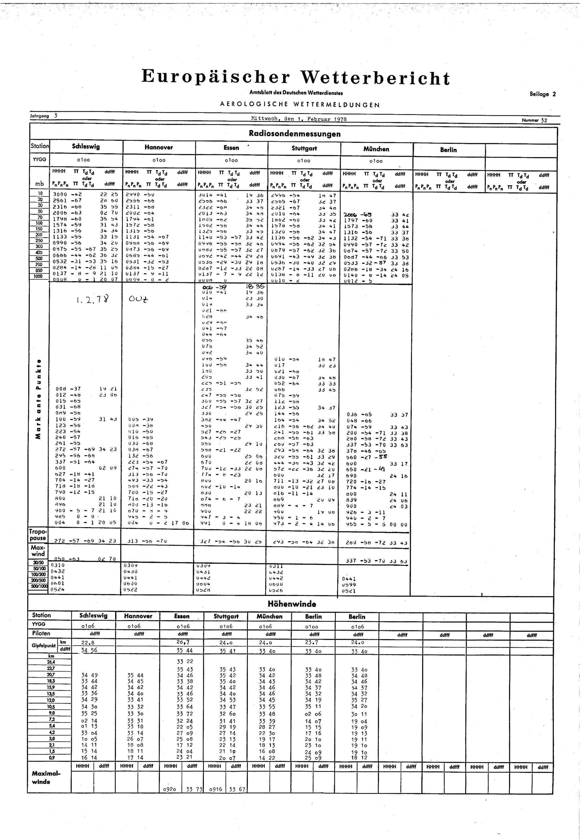 Europäischer Wetterbericht. Beilage 1, Bodenwettermeldungen. 1976-1994