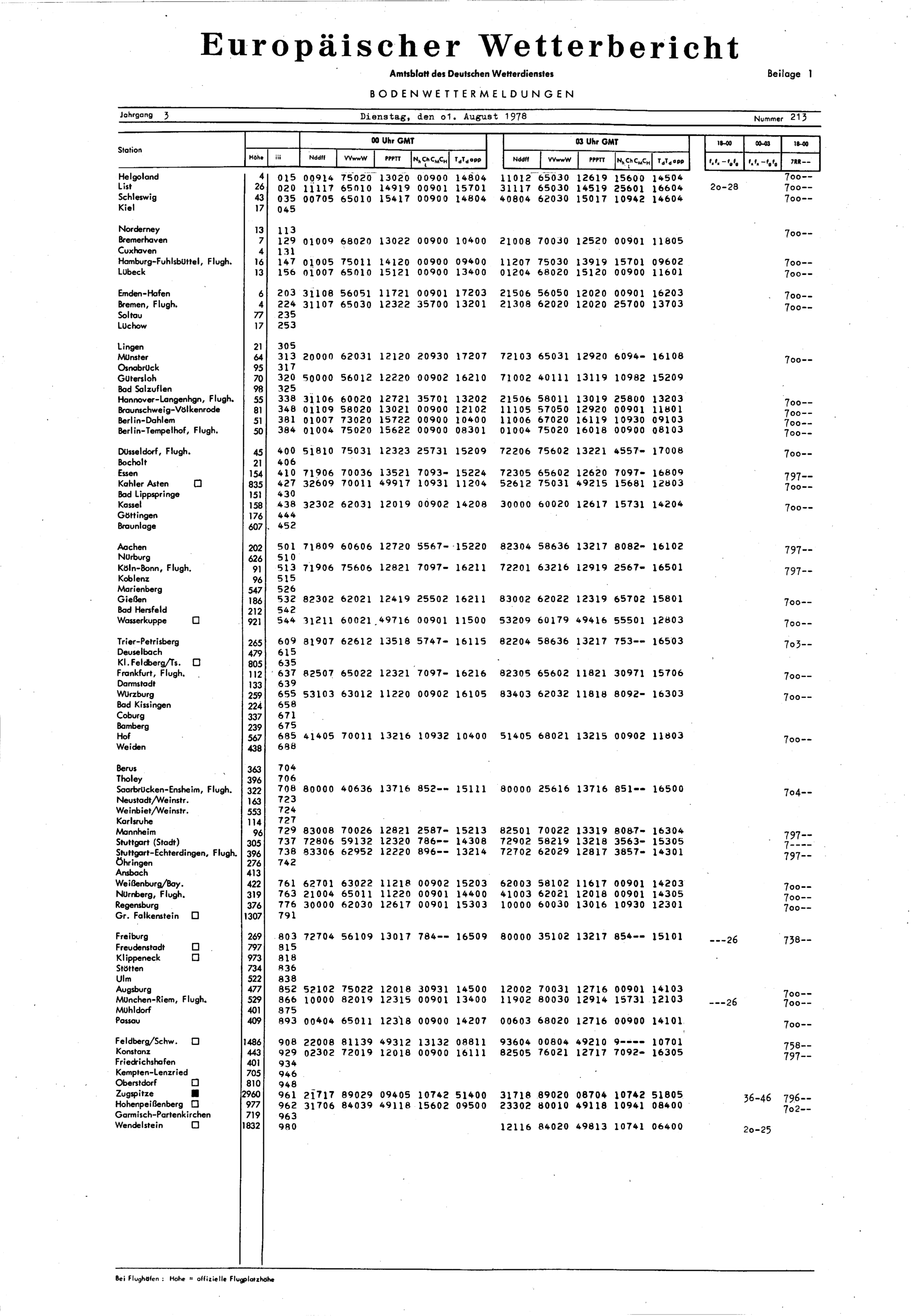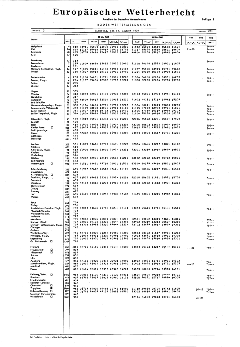 Europäischer Wetterbericht. Beilage 1, Bodenwettermeldungen. 1976-1994