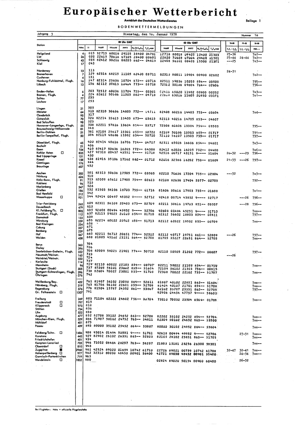 Europäischer Wetterbericht. Beilage 1, Bodenwettermeldungen. 1976-1994