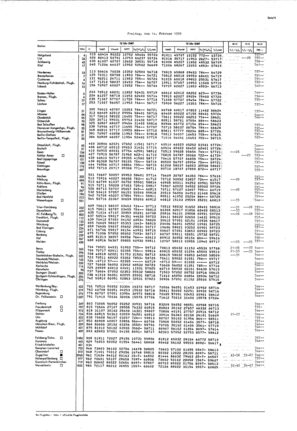 Europäischer Wetterbericht. Beilage 1, Bodenwettermeldungen. 1976-1994