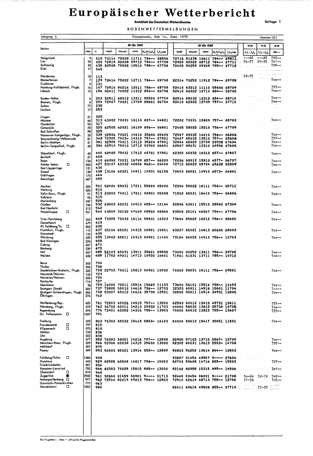 Europäischer Wetterbericht. Beilage 1, Bodenwettermeldungen. 1976-1994