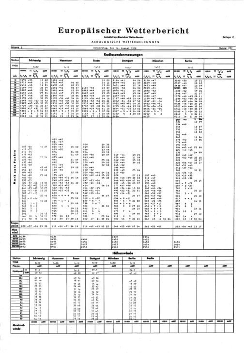 Europäischer Wetterbericht. Beilage 1, Bodenwettermeldungen. 1976-1994