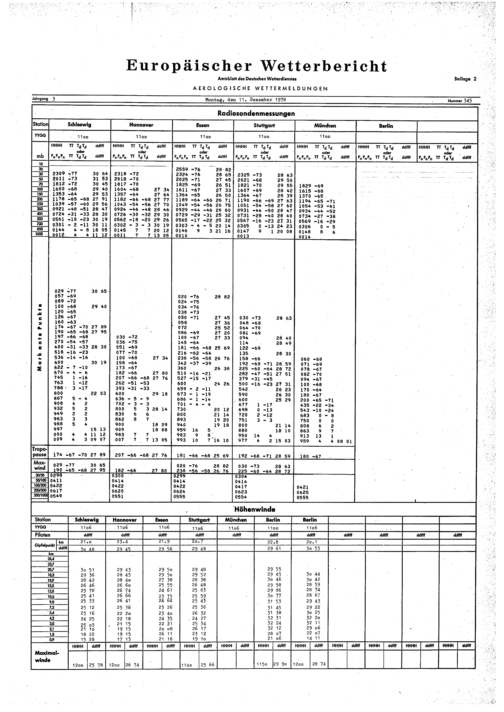 Europäischer Wetterbericht. Beilage 1, Bodenwettermeldungen. 1976-1994