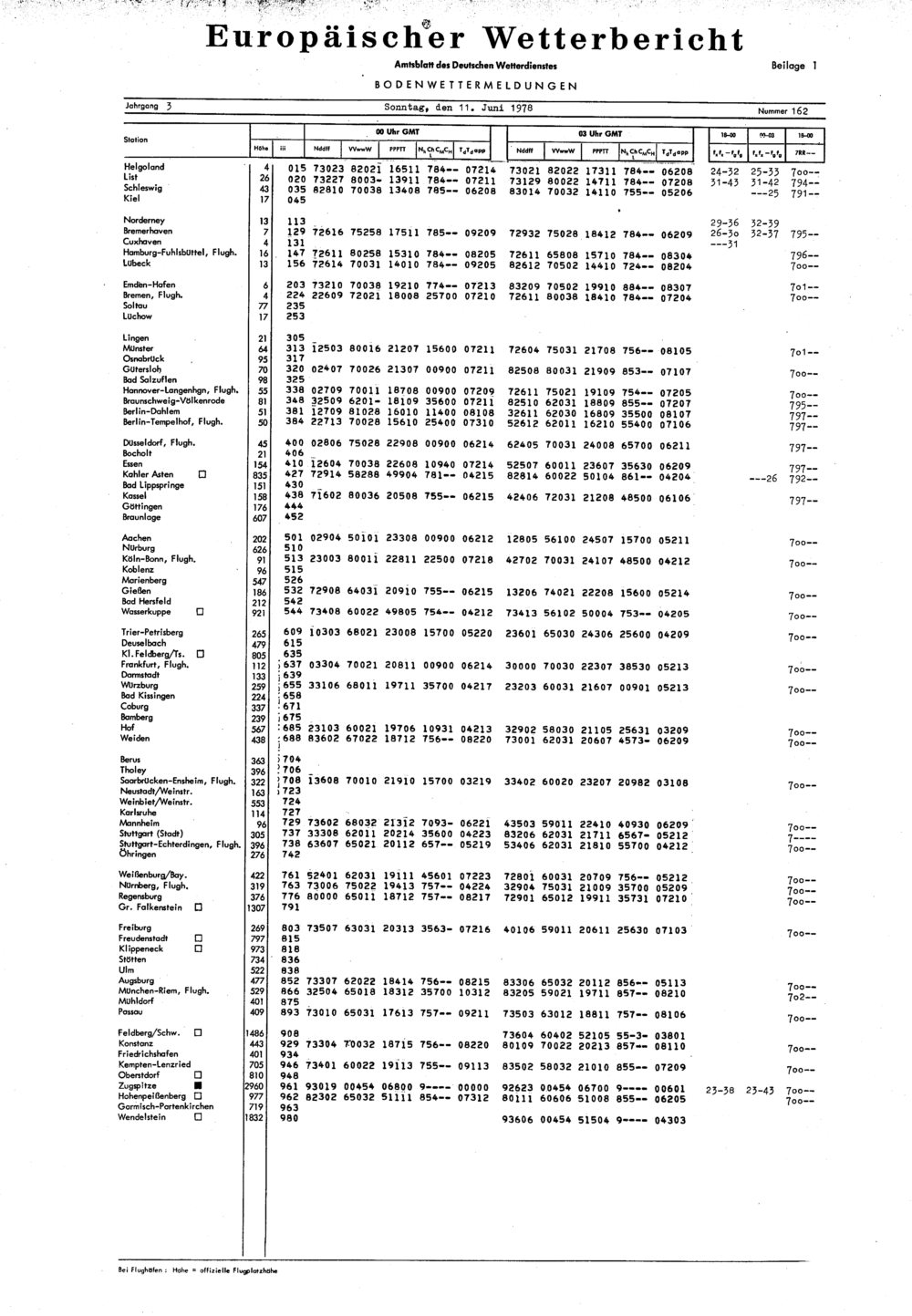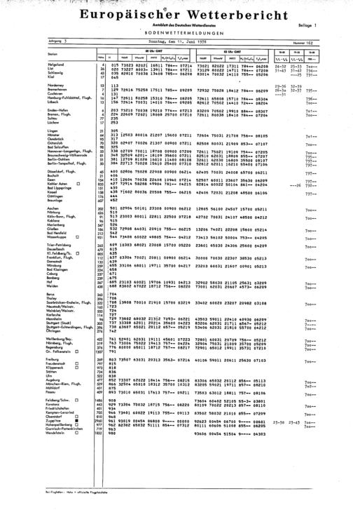 Europäischer Wetterbericht. Beilage 1, Bodenwettermeldungen. 1976-1994