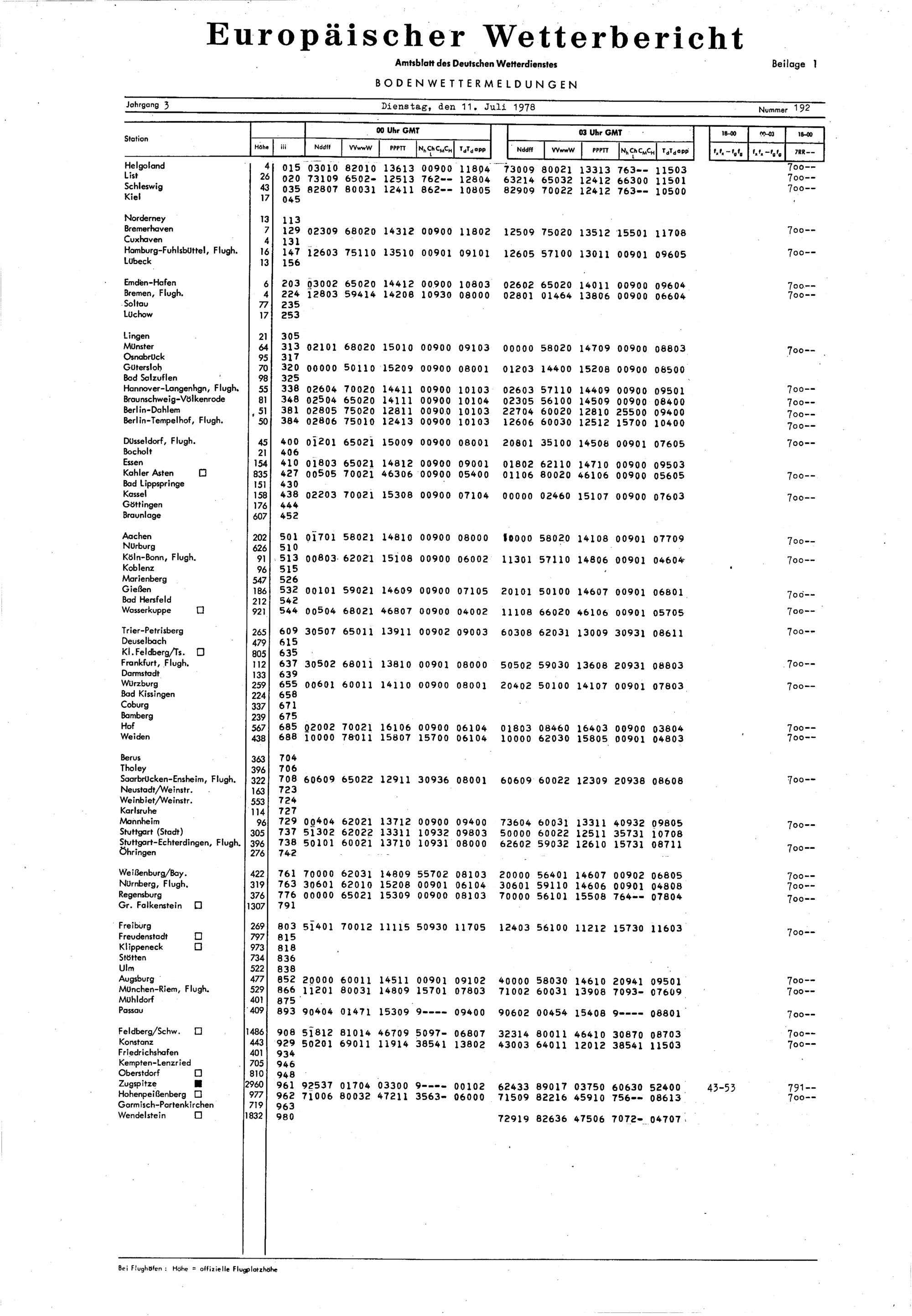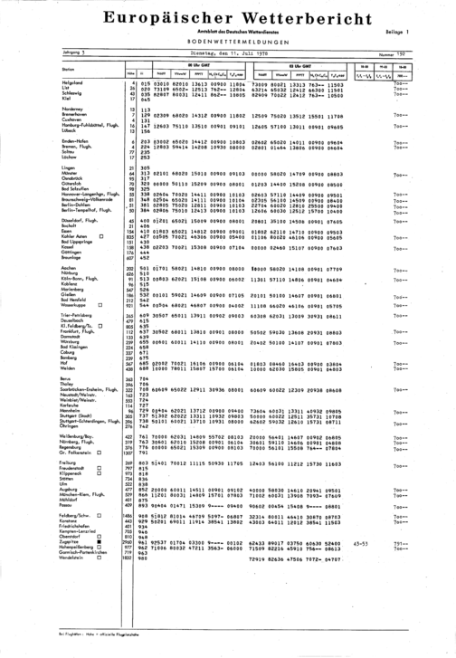 Europäischer Wetterbericht. Beilage 1, Bodenwettermeldungen. 1976-1994