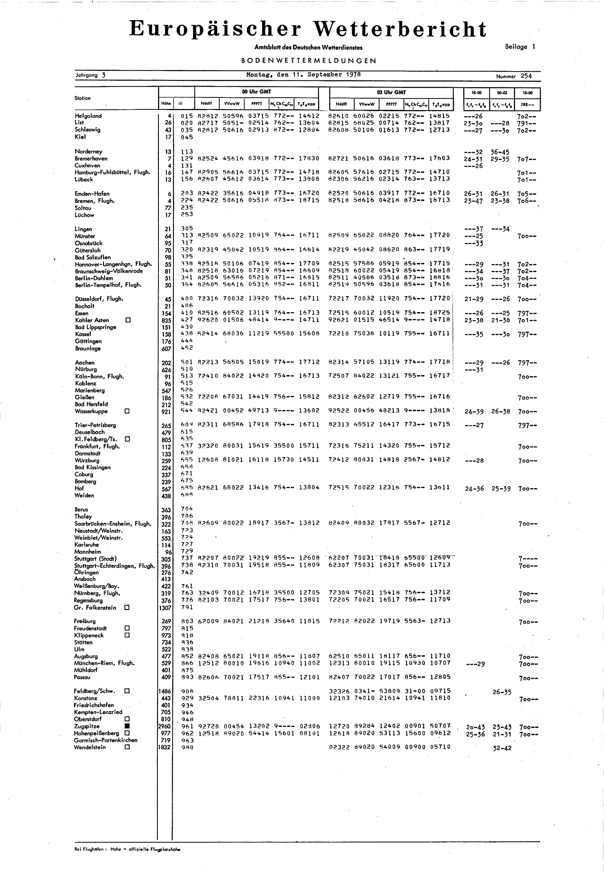 Europäischer Wetterbericht. Beilage 1, Bodenwettermeldungen. 1976-1994