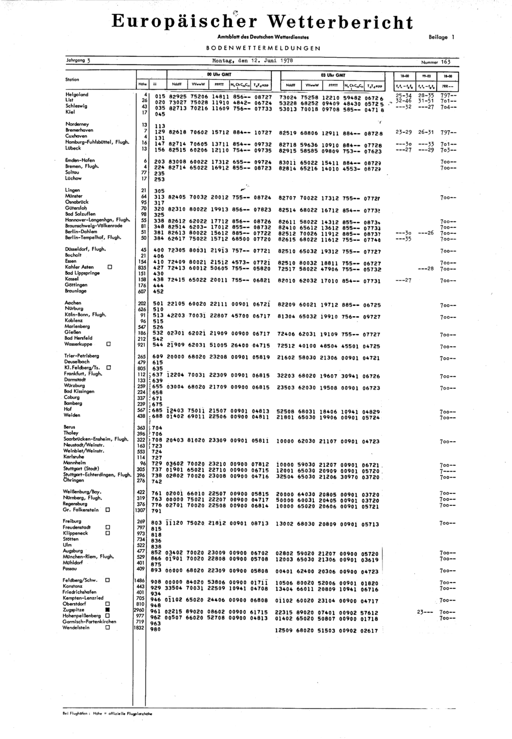 Europäischer Wetterbericht. Beilage 1, Bodenwettermeldungen. 1976-1994