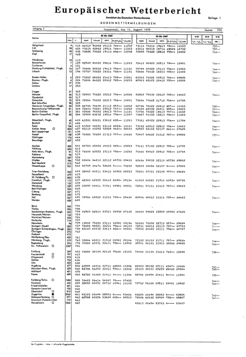 Europäischer Wetterbericht. Beilage 1, Bodenwettermeldungen. 1976-1994