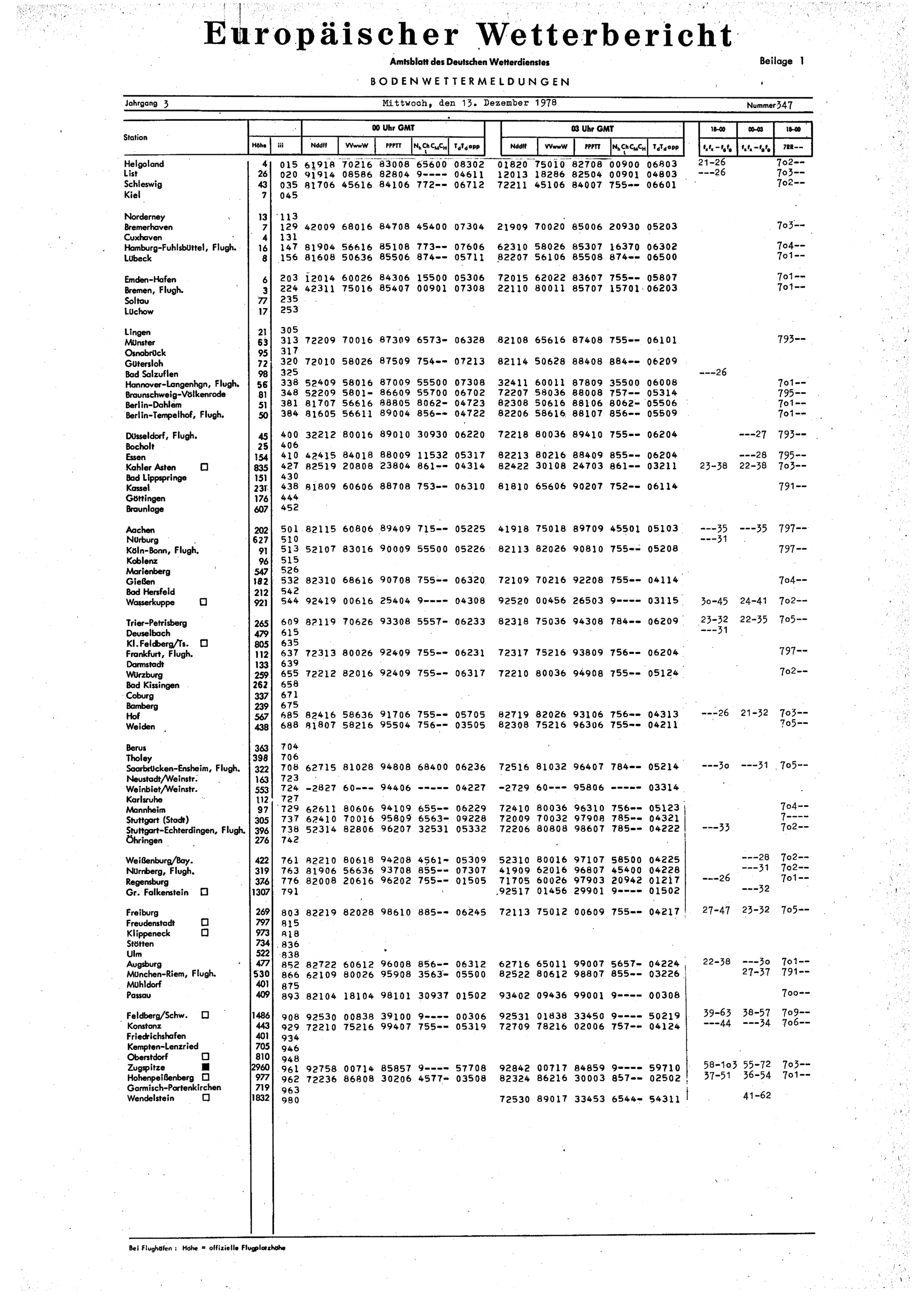 Europäischer Wetterbericht. Beilage 1, Bodenwettermeldungen. 1976-1994