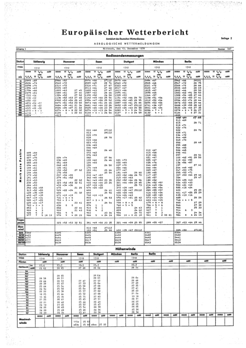 Europäischer Wetterbericht. Beilage 1, Bodenwettermeldungen. 1976-1994