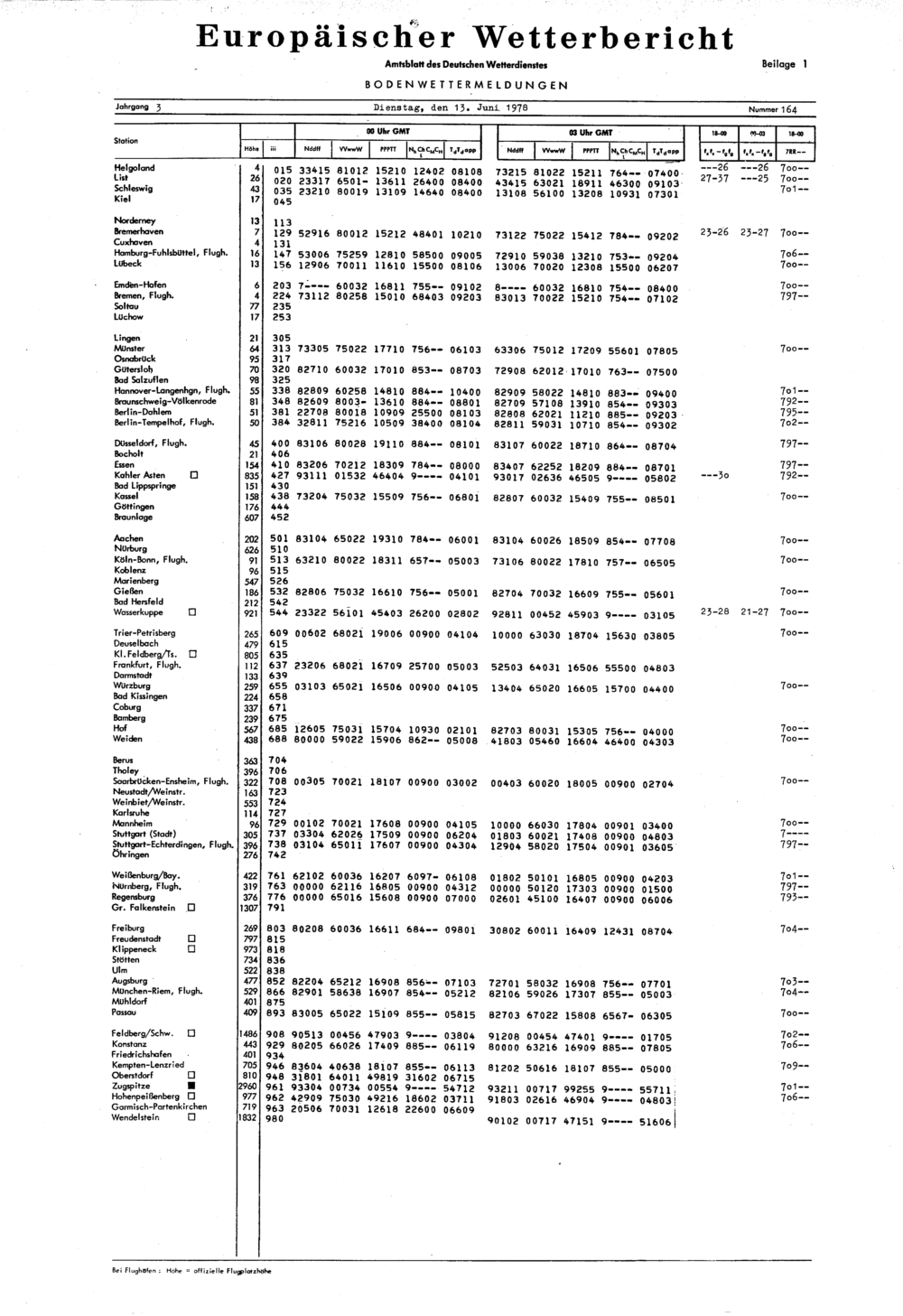 Europäischer Wetterbericht. Beilage 1, Bodenwettermeldungen. 1976-1994