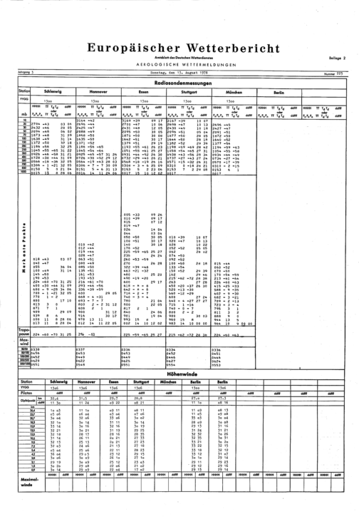 Europäischer Wetterbericht. Beilage 1, Bodenwettermeldungen. 1976-1994