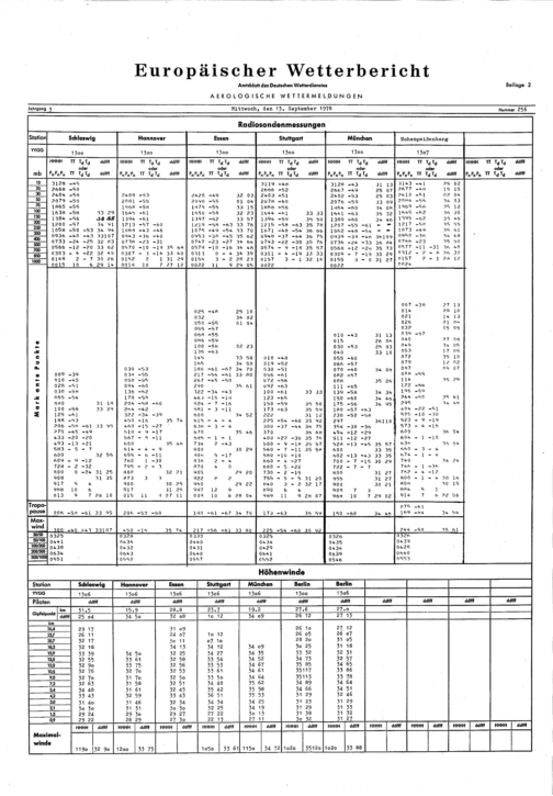 Europäischer Wetterbericht. Beilage 1, Bodenwettermeldungen. 1976-1994