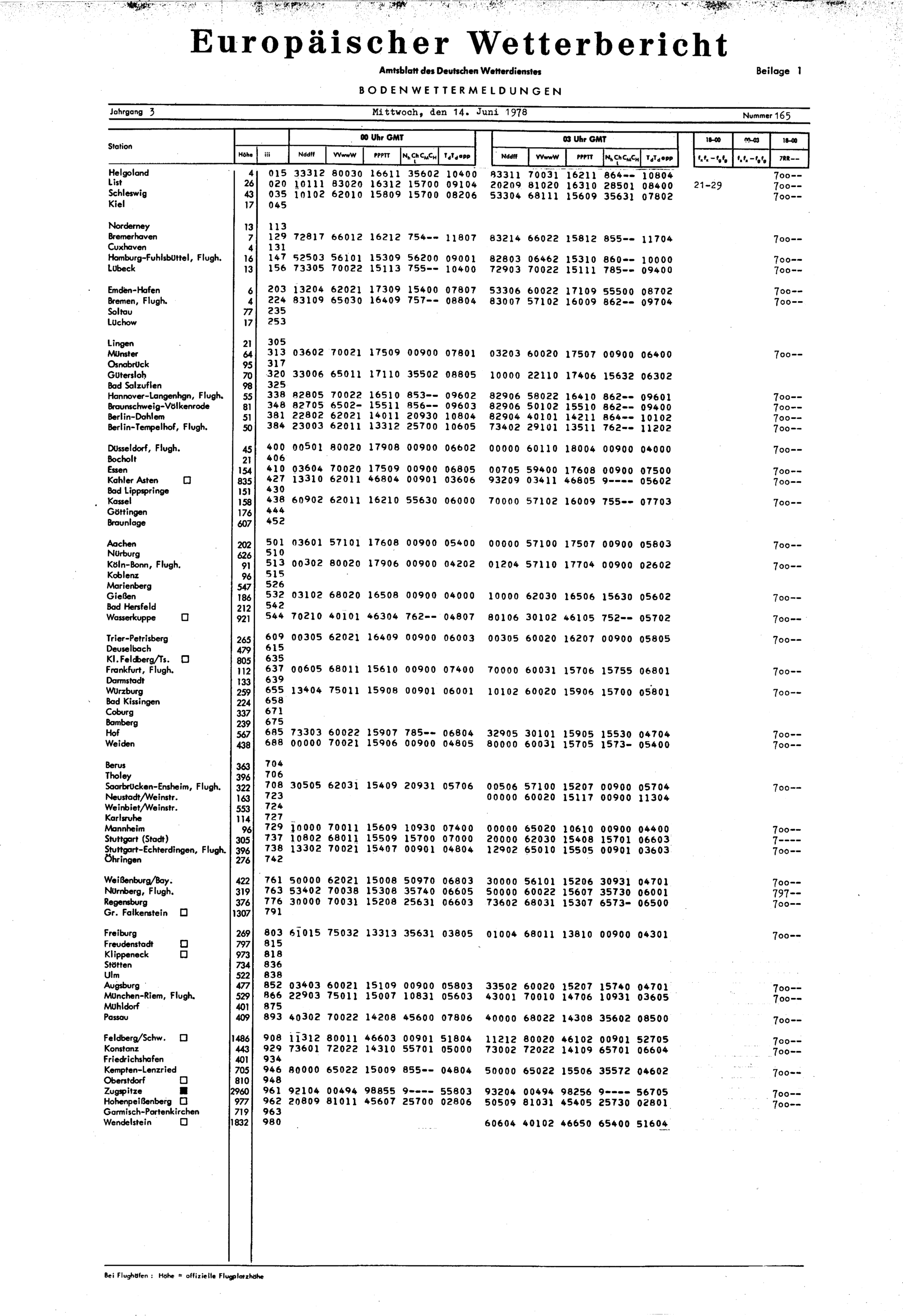 Europäischer Wetterbericht. Beilage 1, Bodenwettermeldungen. 1976-1994