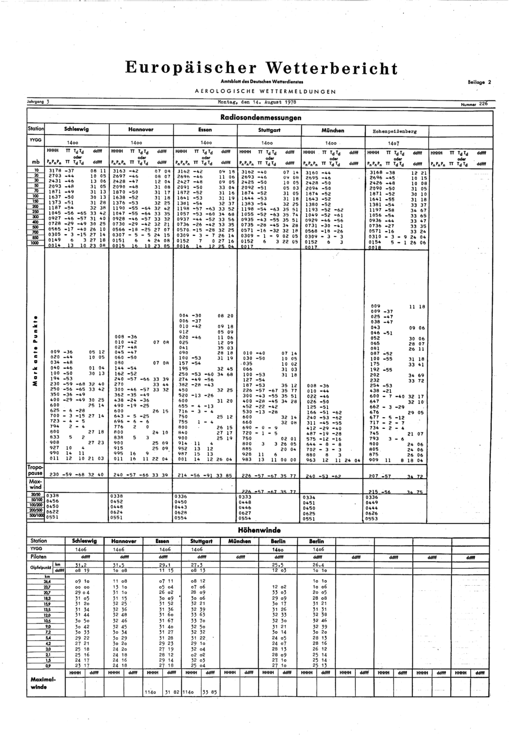 Europäischer Wetterbericht. Beilage 1, Bodenwettermeldungen. 1976-1994