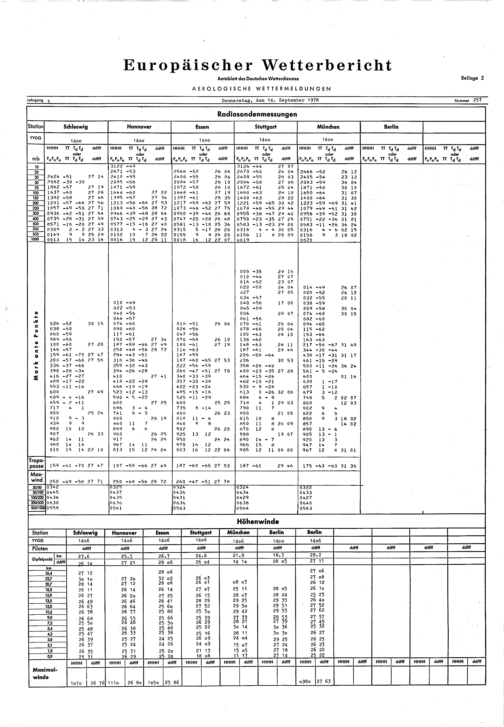 Europäischer Wetterbericht. Beilage 1, Bodenwettermeldungen. 1976-1994