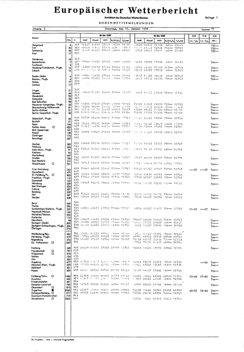 Europäischer Wetterbericht. Beilage 1, Bodenwettermeldungen. 1976-1994