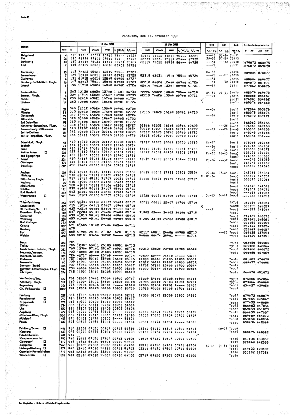 Europäischer Wetterbericht. Beilage 1, Bodenwettermeldungen. 1976-1994