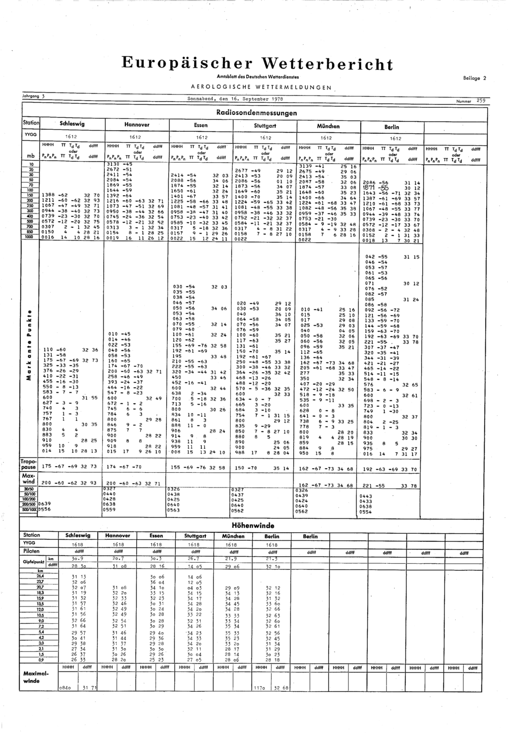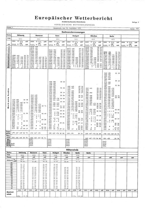 Europäischer Wetterbericht. Beilage 1, Bodenwettermeldungen. 1976-1994