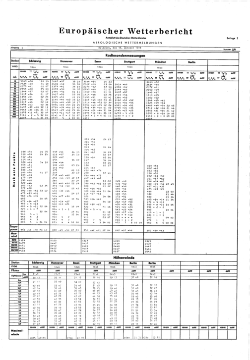 Europäischer Wetterbericht. Beilage 1, Bodenwettermeldungen. 1976-1994