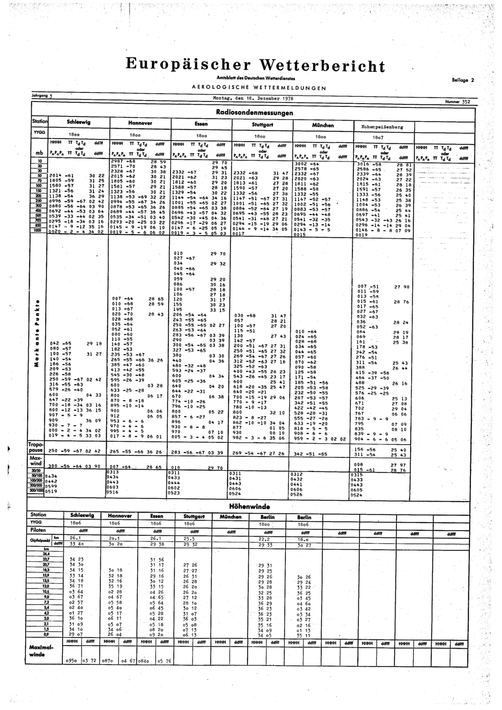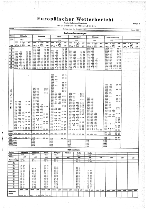 Europäischer Wetterbericht. Beilage 1, Bodenwettermeldungen. 1976-1994