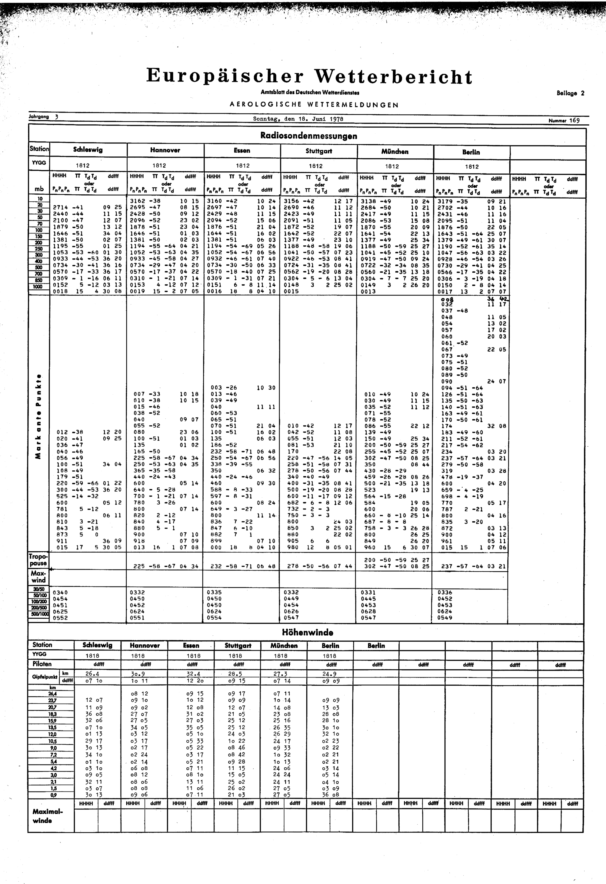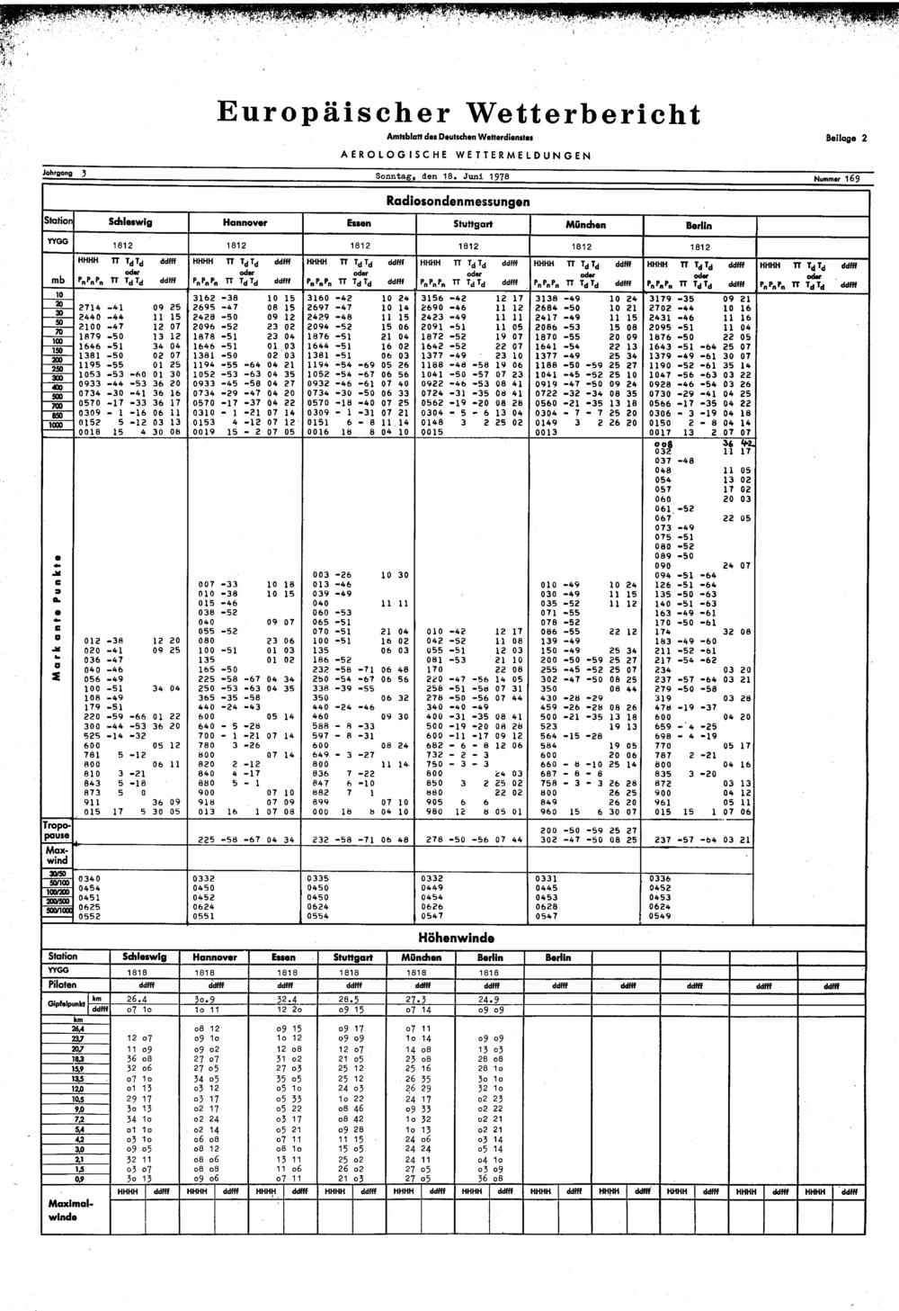 Europäischer Wetterbericht. Beilage 1, Bodenwettermeldungen. 1976-1994