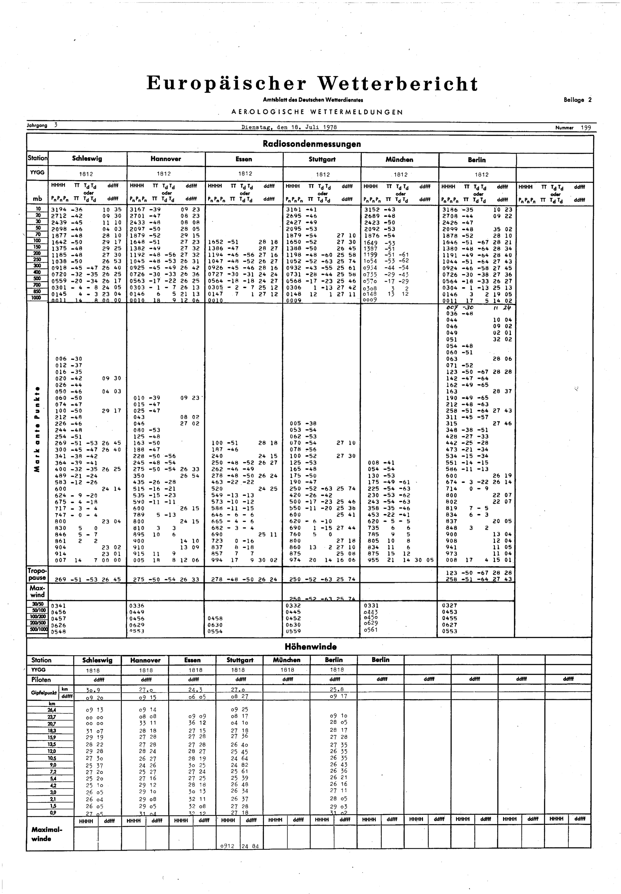 Europäischer Wetterbericht. Beilage 1, Bodenwettermeldungen. 1976-1994