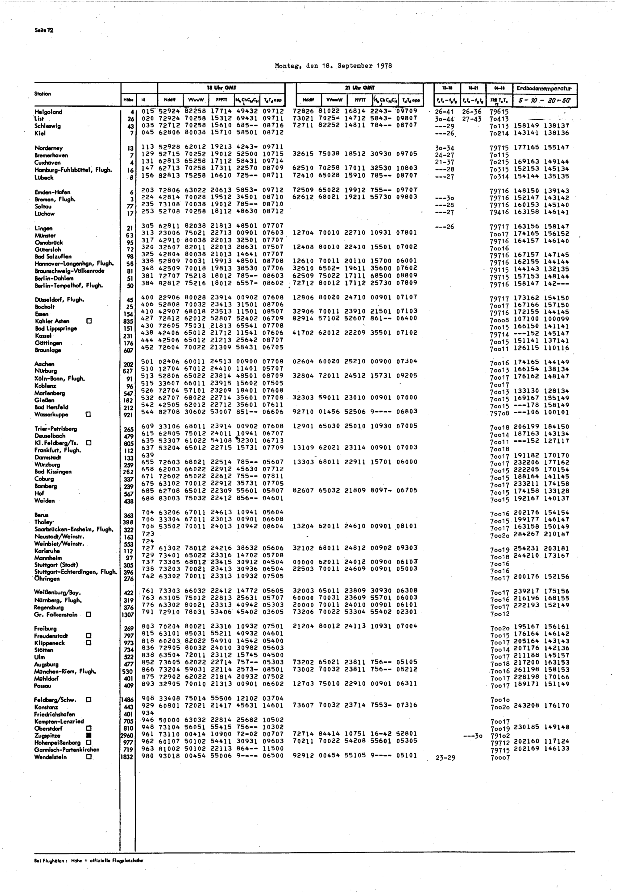Europäischer Wetterbericht. Beilage 1, Bodenwettermeldungen. 1976-1994