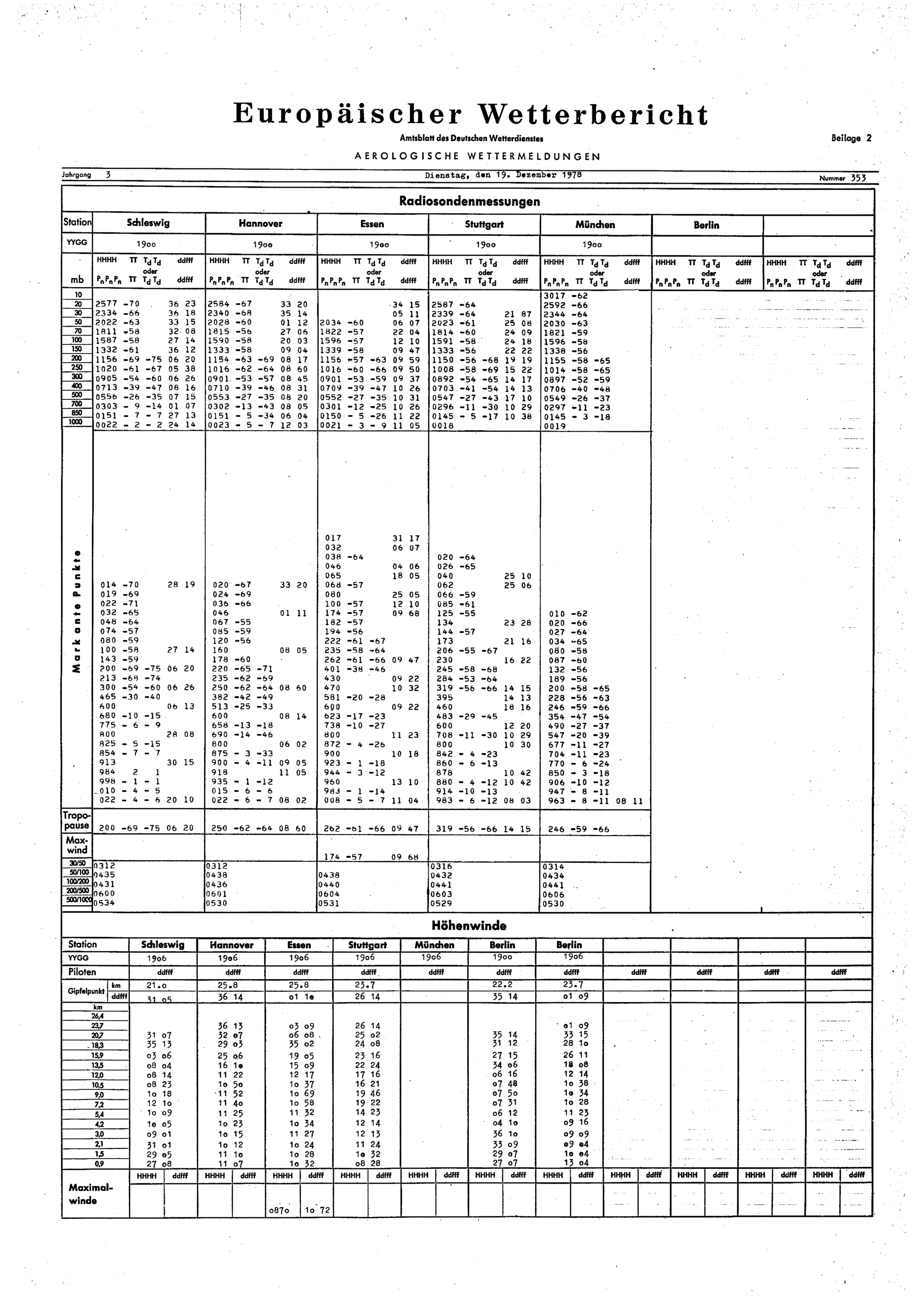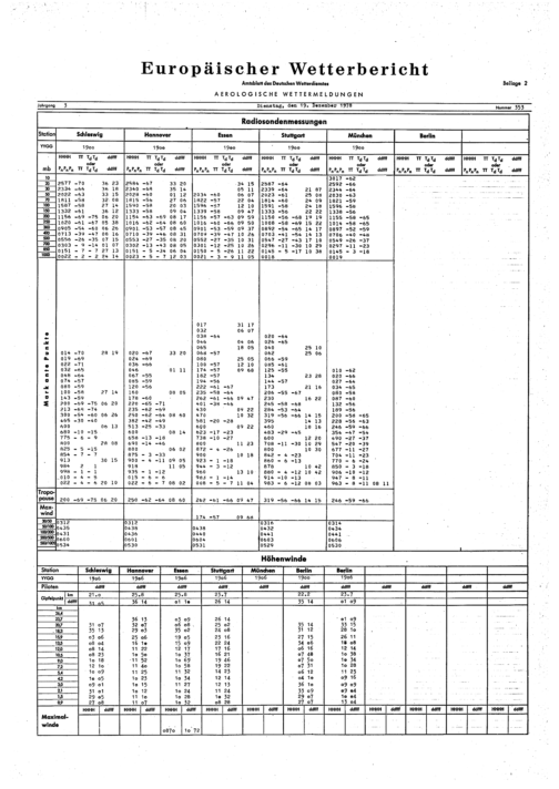 Europäischer Wetterbericht. Beilage 1, Bodenwettermeldungen. 1976-1994