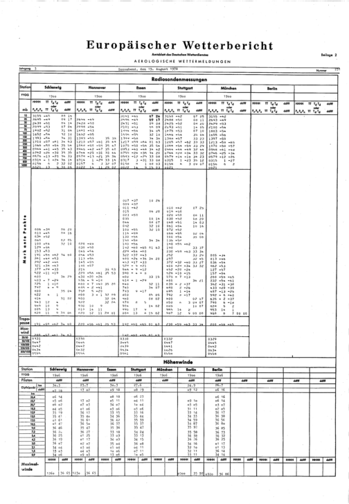 Europäischer Wetterbericht. Beilage 1, Bodenwettermeldungen. 1976-1994