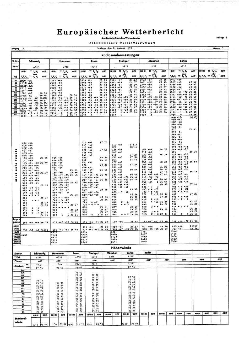 Europäischer Wetterbericht. Beilage 1, Bodenwettermeldungen. 1976-1994