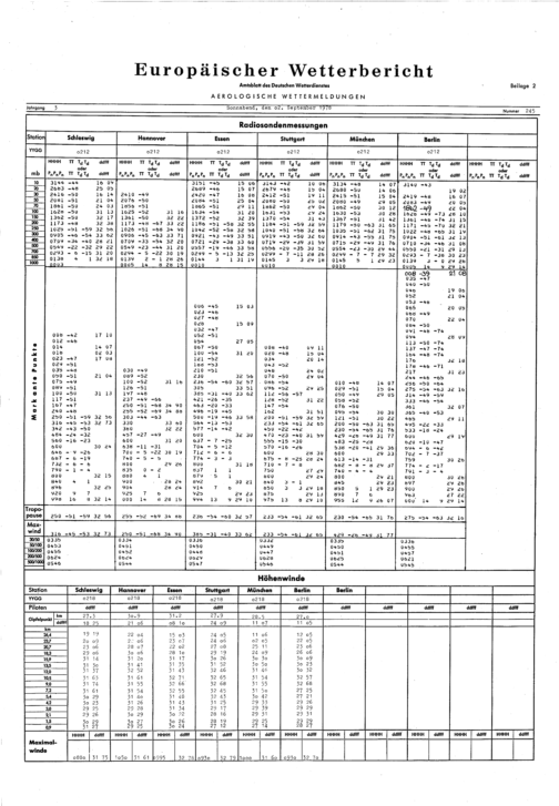 Europäischer Wetterbericht. Beilage 1, Bodenwettermeldungen. 1976-1994