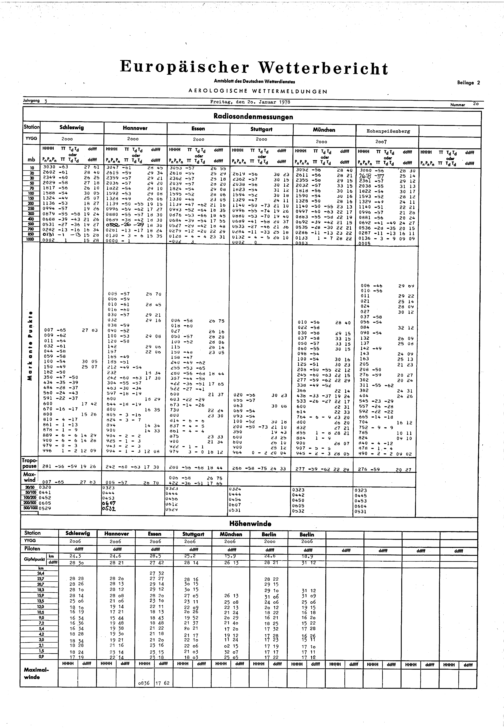 Europäischer Wetterbericht. Beilage 1, Bodenwettermeldungen. 1976-1994