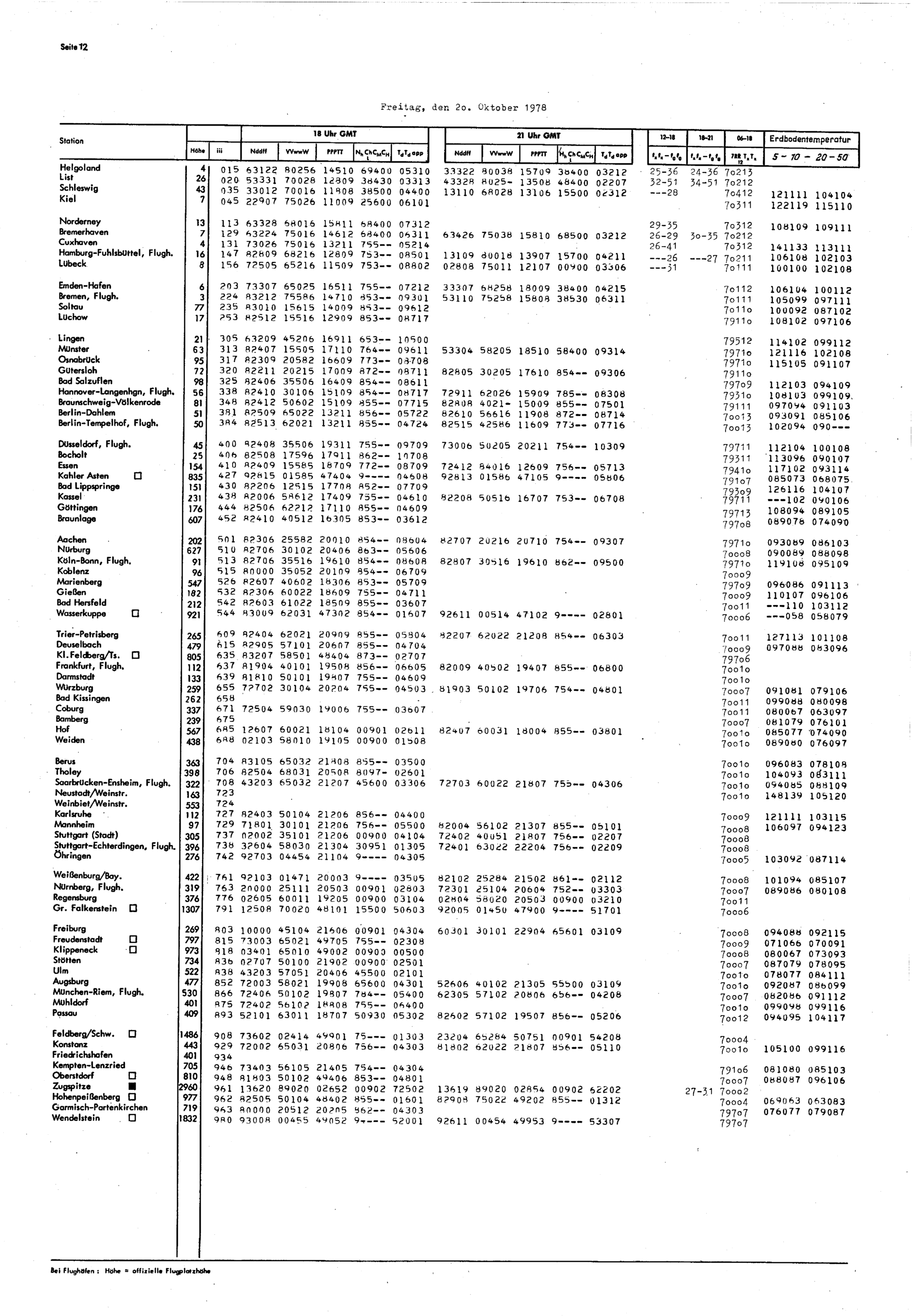 Europäischer Wetterbericht. Beilage 1, Bodenwettermeldungen. 1976-1994