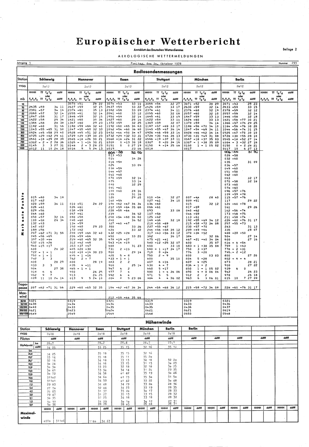 Europäischer Wetterbericht. Beilage 1, Bodenwettermeldungen. 1976-1994
