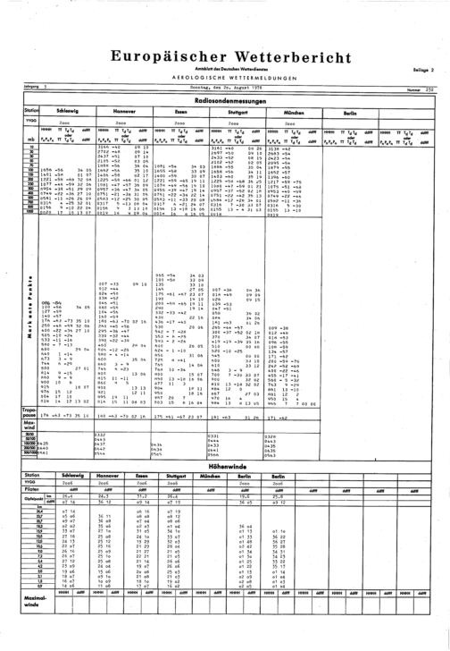 Europäischer Wetterbericht. Beilage 1, Bodenwettermeldungen. 1976-1994