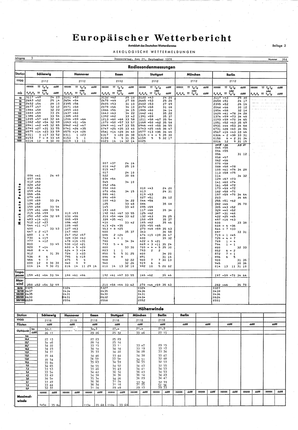 Europäischer Wetterbericht. Beilage 1, Bodenwettermeldungen. 1976-1994