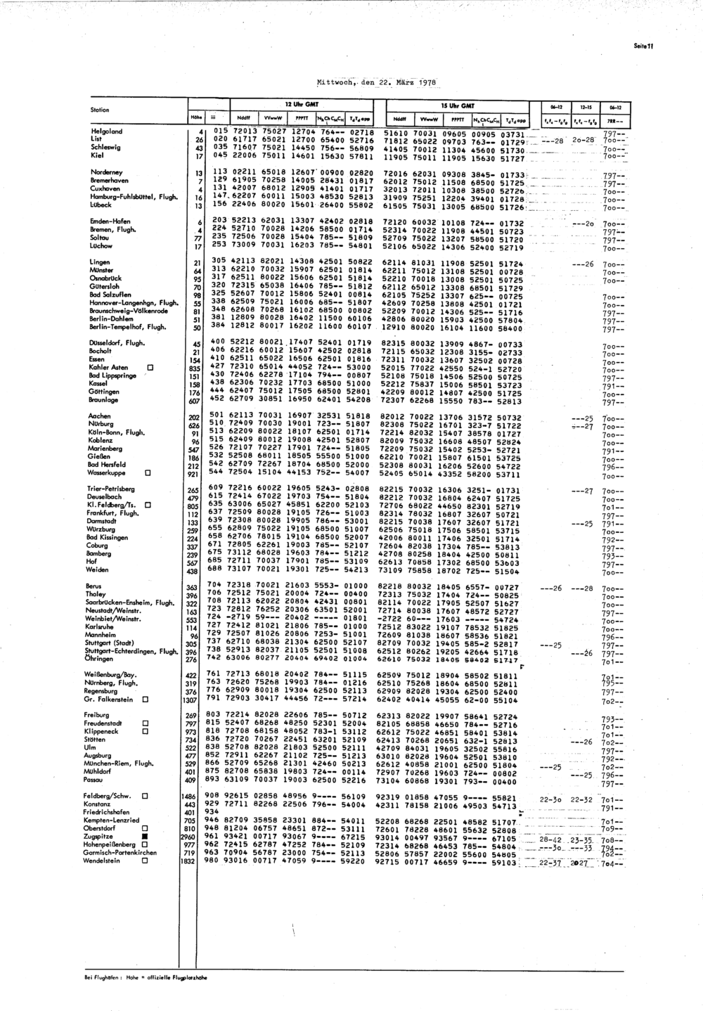 Europäischer Wetterbericht. Beilage 1, Bodenwettermeldungen. 1976-1994