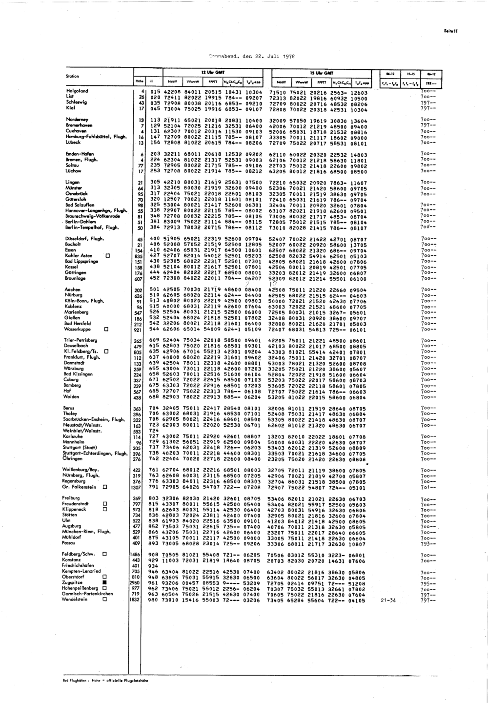 Europäischer Wetterbericht. Beilage 1, Bodenwettermeldungen. 1976-1994