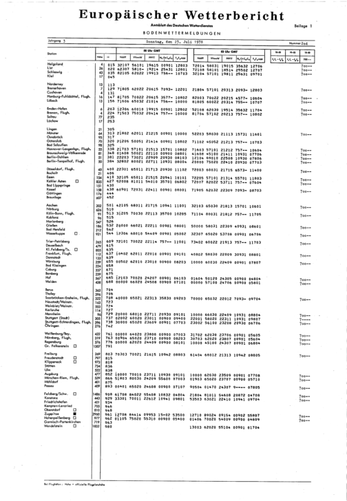 Europäischer Wetterbericht. Beilage 1, Bodenwettermeldungen. 1976-1994